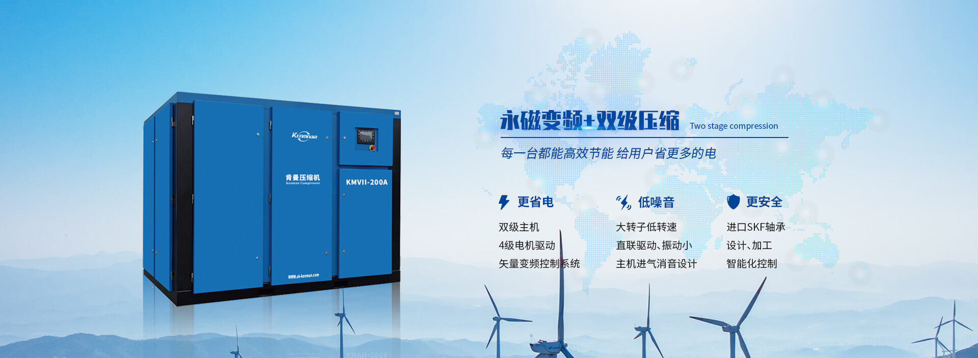 肯曼壓縮機產品質量充分體現了現代化的技術,產品符合環保要求,質量保證,安全可靠,使用壽命長。